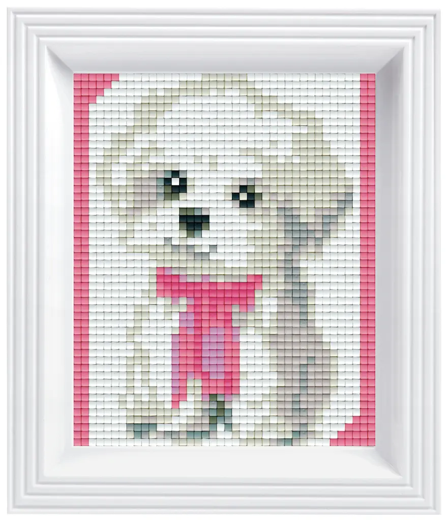 Kit cadeau 1 plaque - bichon blanc noeud rose