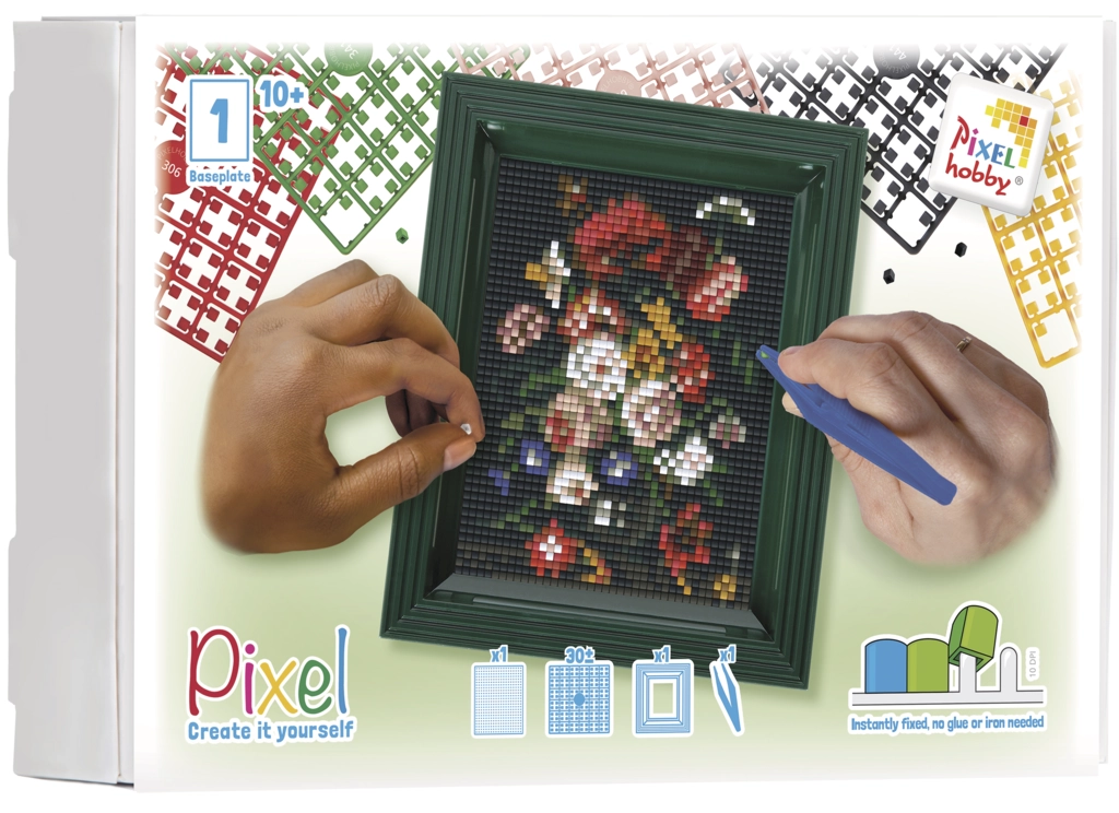 Pixels, plaque de base 10 x 12cm, patron, cadre, pince bleue